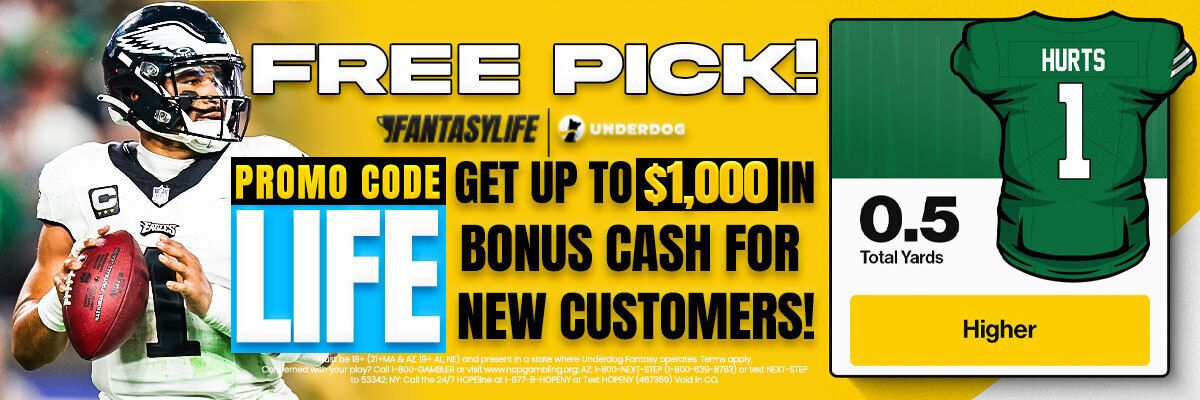Sign up for Underdog using our promo code: LIFE and you can earn up to $1,000 Bonus Cash on your first deposit!